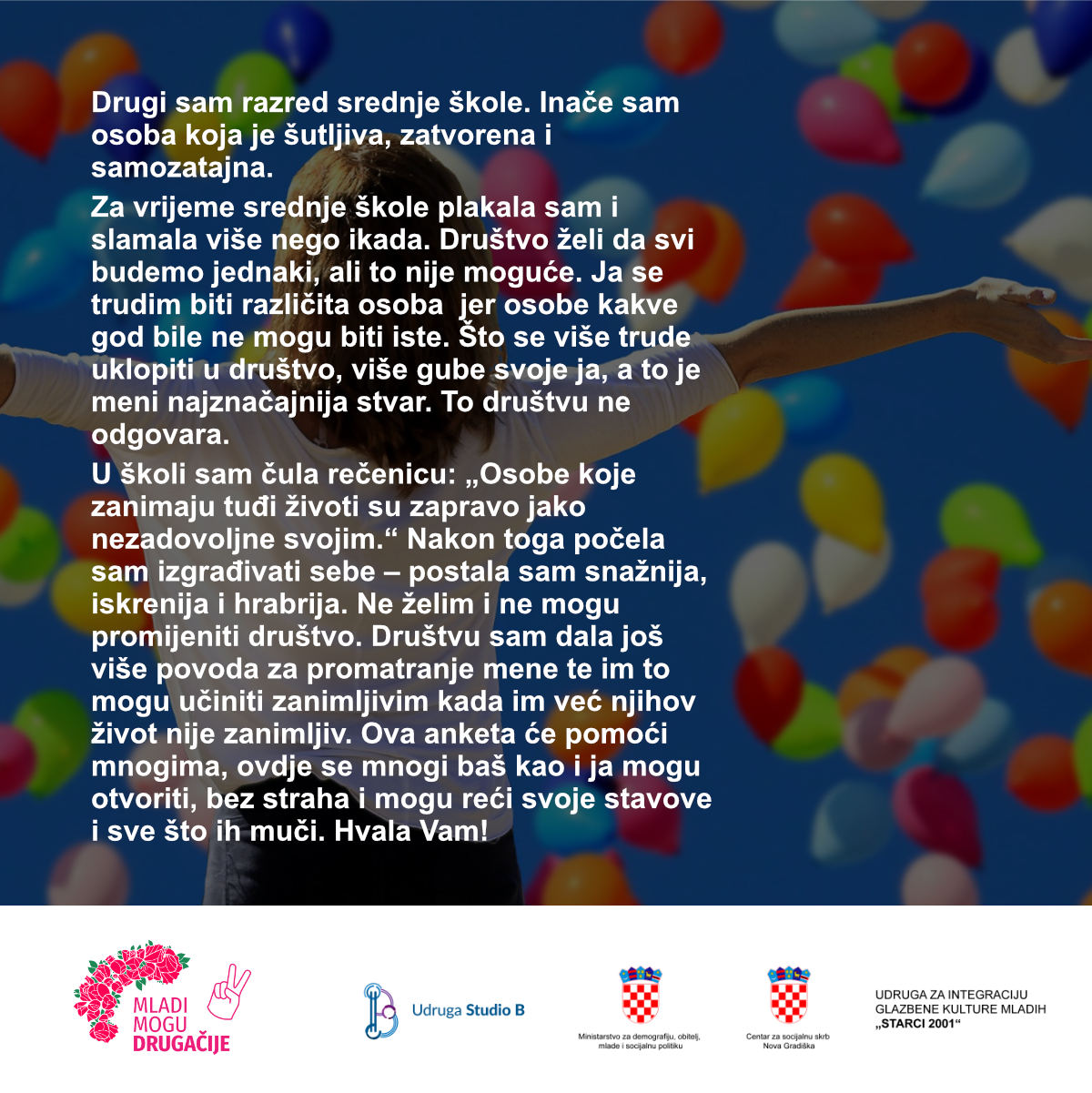U nastavku vam donosimo prikupljene priče mladih srednjoškolaca u kojima su iznijeli svoja iskustva, ali i stavove na ovu temu; te brošuru s rezultatima istraživanja.