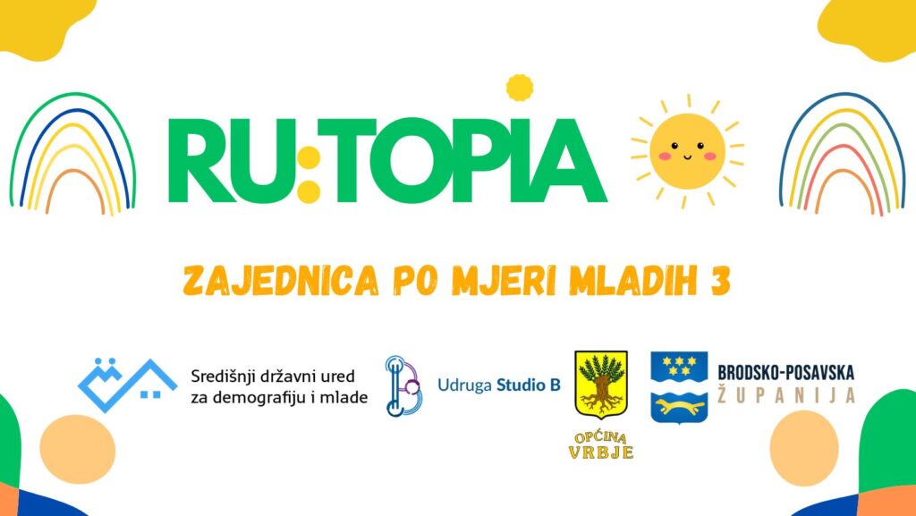 Udruga Studio B od početka siječnja provodi jednogodišnji projekt pod nazivom „RU:TOPIA – zajednica po mjeri mladih 3“. Projekt je podržao Središnji državni ured za demografiju i mlade kroz natječaj “Poziv za prijavu projekata usmjerenih mladima za financijsku potporu iz raspoloživih sredstava dijela prihoda od igara na sreću i Državnog proračuna za 2023. godinu” u iznosu od 18.000,00 €. u sklopu P3. Mladi u ruralnim sredinama. Partneri u provedbi projekta su Općina Vrbje i Brodsko-posavska županija. Projekt će trajati do 31. prosinca 2024. Cilj projekta je ostvariti uvjete koji će omogućiti mladima iz ruralnih sredina Brodsko-posavske županije, s naglaskom na općinu Vrbje, ispunjavanje svojih punih potencijala, te podizanje njihove kvalitete života. Ciljane skupine ovog projekta su 70 mladih iz općine Vrbje koji pripadaju sljedećim podgrupama (opća populacija, NEET, srednjoškolci, mlade majke, mladi s ekonomskim i obrazovnim preprekama) te 200 mladih s područja Brodsko – posavske županije u dobi od 15 do 30 godina, koji žive u ruralnim sredinama.